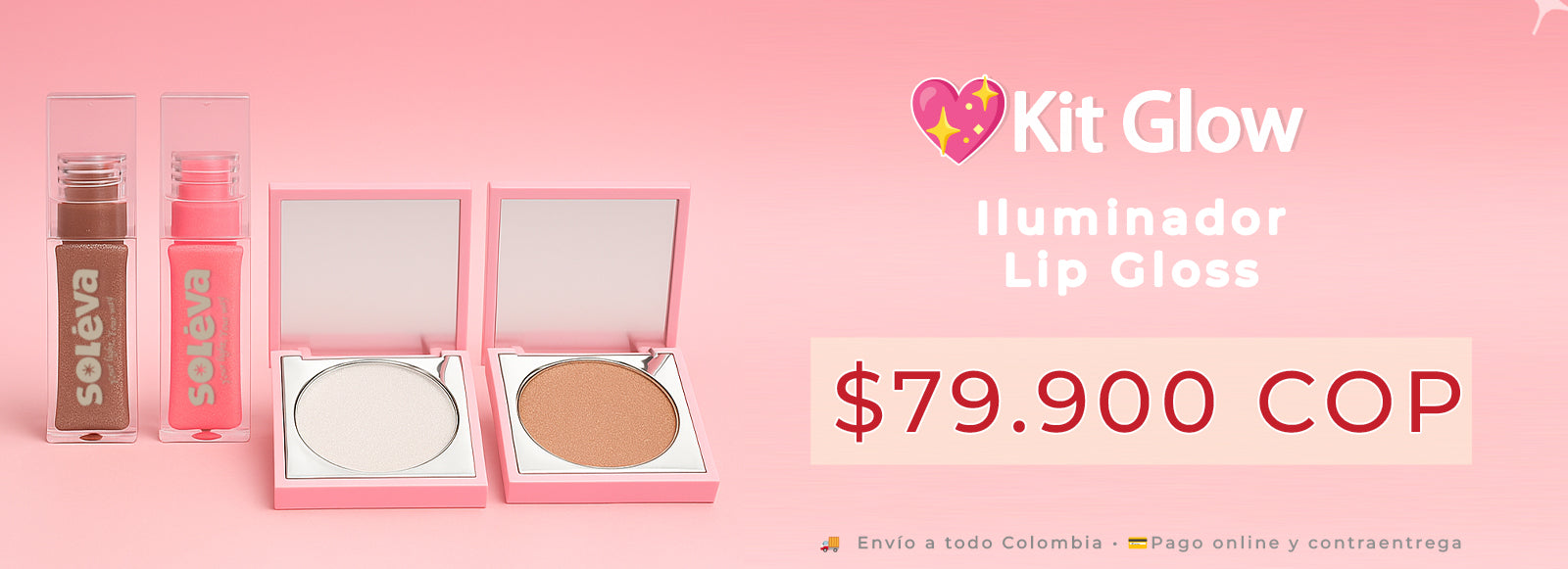 Doble gloss + iluminador para labios jugosos y piel radiante en minutos.